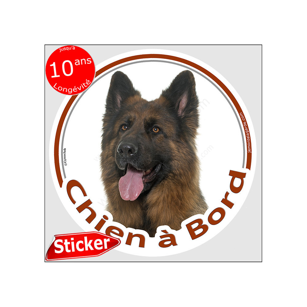 Un disque autocollant rond à coller à l'arrière de votre voiture pour prévenir de la présence de votre Berger Allemand poils longs ancien type appelé aussi Altdeutsche Schäferhunde