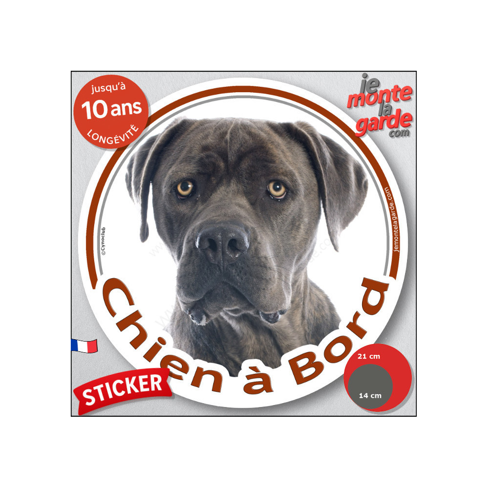 Un disque autocollant à coller à l'arrière de votre voiture pour prévenir de la présence de votre Cane Corso gris bleu.