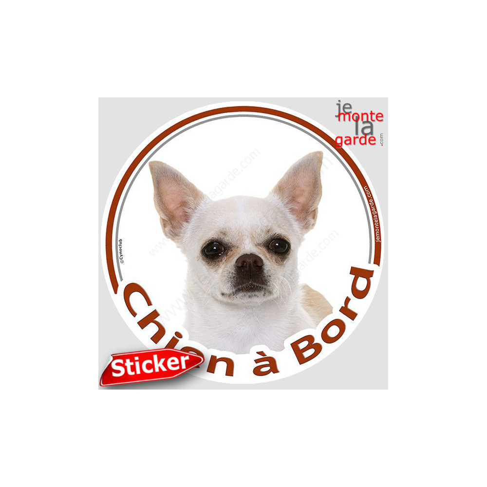 Un joli autocollant à coller à l'arrière de votre voiture pour prévenir de la présence de votre Chihuahua blanc poils courts.