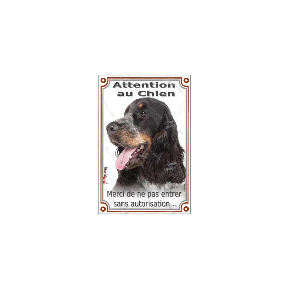 Plaque verticale “Attention au Chien – Merci de ne pas entrer sans autorisation” avec un Cocker Anglais bleu roan et feu. Fabrication française, résistante au soleil, gel et pluie. Lisible, esthétique, dissuasive sans agressivité. Cadeau malin, pratique et élégant pour valoriser son chien.
