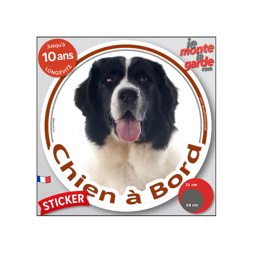 Un disque autocollant rond à coller à l'arrière de votre voiture pour prévenir de la présence de votre Landseer.