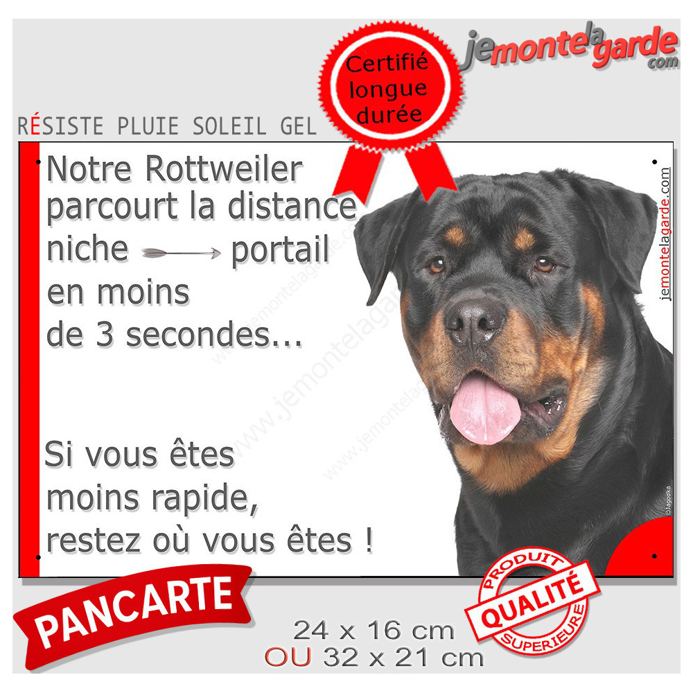 Votre Rottweiler est un gardien rapide ? Faîtes-le savoir avec cette plaque originale à placer dès l'entrée !