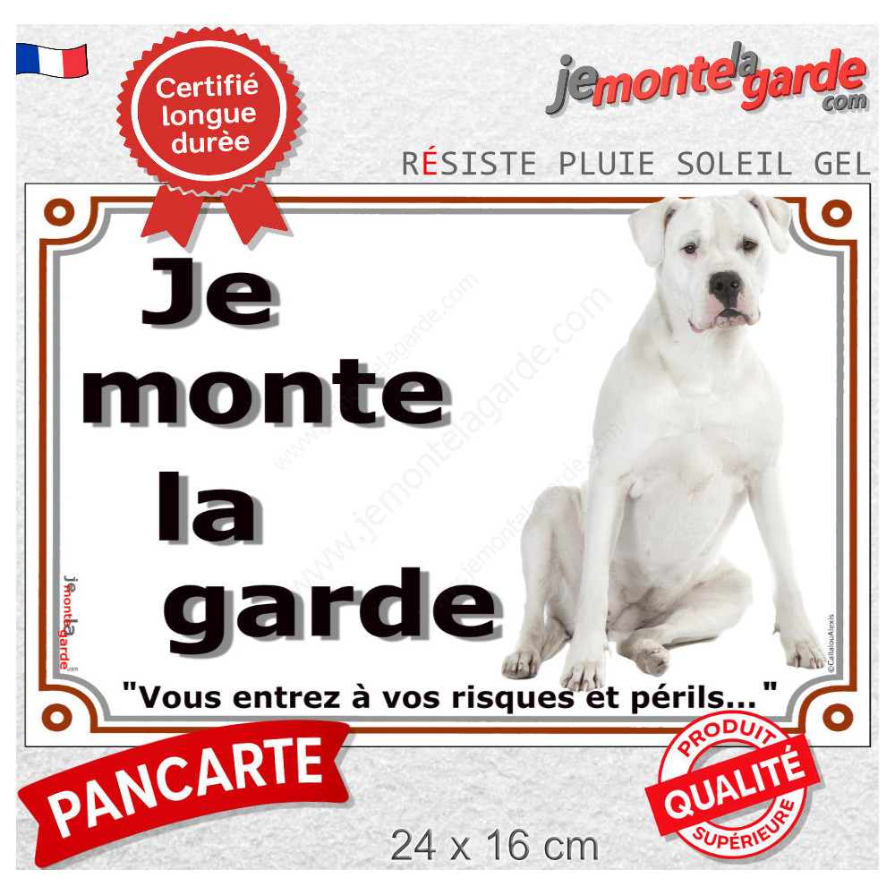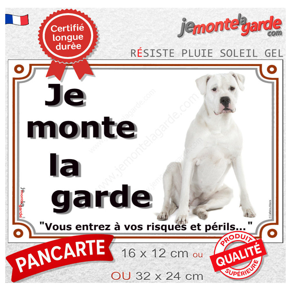 Votre Dogue Argentin mis en valeur sur la porte d'entrée par cette pancarte élégante, qui affiche que votre chien surveille la maison.