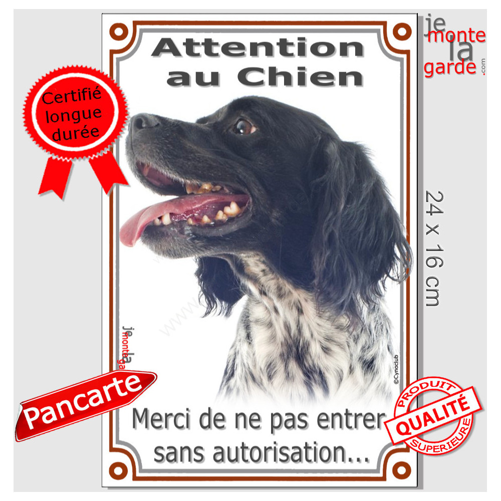 Votre Epagneul Breton Noir et blanc sur cette plaque verticale pour votre portail pour le mettre en valeur.