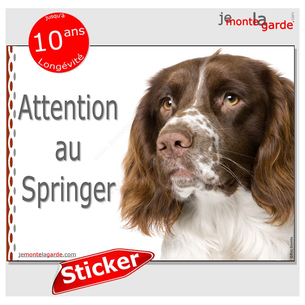 Un panneau autocollant English Springer "Attention au Chien" qui résiste à la pluie au soleil et au gel, à coller près de votre entrée, sur votre porte, sur la boîte aux lettres, à côté de la sonnette, sur le portillon ou le portail
