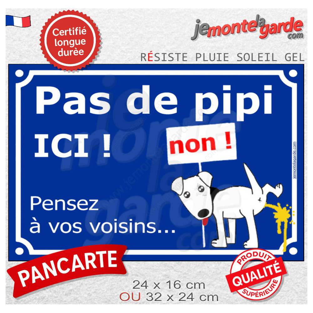 Chaque propriétaire de chien sera gentiment rappelé à l’ordre, dans un esprit de convivialité et de respect mutuel. Le message "Pas de pipi ICI... pensez à vos voisins !" n’est ni agressif ni désobligeant. Il est juste ce qu’il faut pour susciter la réflexion et encourager des comportements plus civilisés. Vos voisins ne pourront qu’apprécier cette approche délicate et sophistiquée, et qui sait, peut-être même s’en inspirer pour leurs propres entrées.