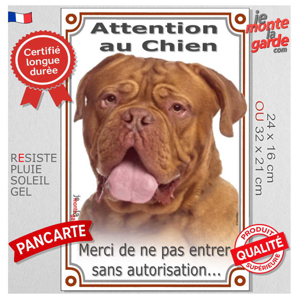 Original, ce panneau de portail va informer vos visiteurs tout en mettant en valeur votre Dogue de Bordeaux acajou fauve à masque rouge.