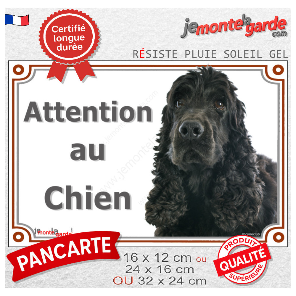 Une pancarte de portail idéale pour valoriser votre Cocker Anglais Spaniel entièrement noir tout en prévenant les visiteurs.