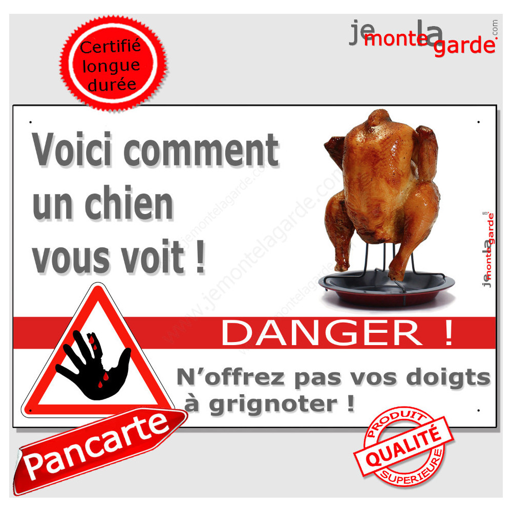 Texte | "Voici comment un chien vous voit ! Danger, n'offrez pas vos doigts à grignoter" |