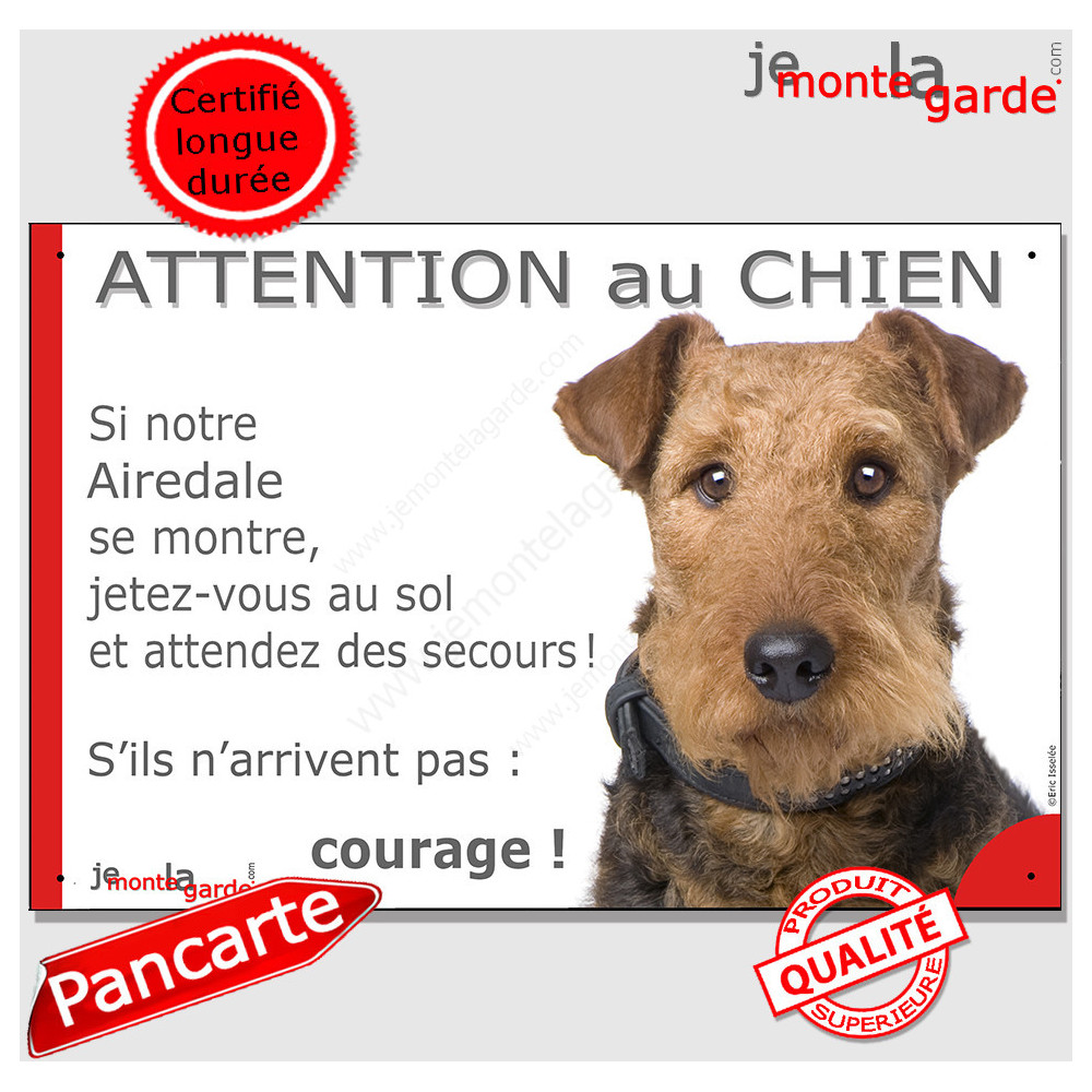 Amusez les passants, vos invités et... la galerie avec pancarte sur votre portail qui en plus mettra en valeur votre Airedale Terrier ? le message passera toujours mieux avec un peu d'humour !