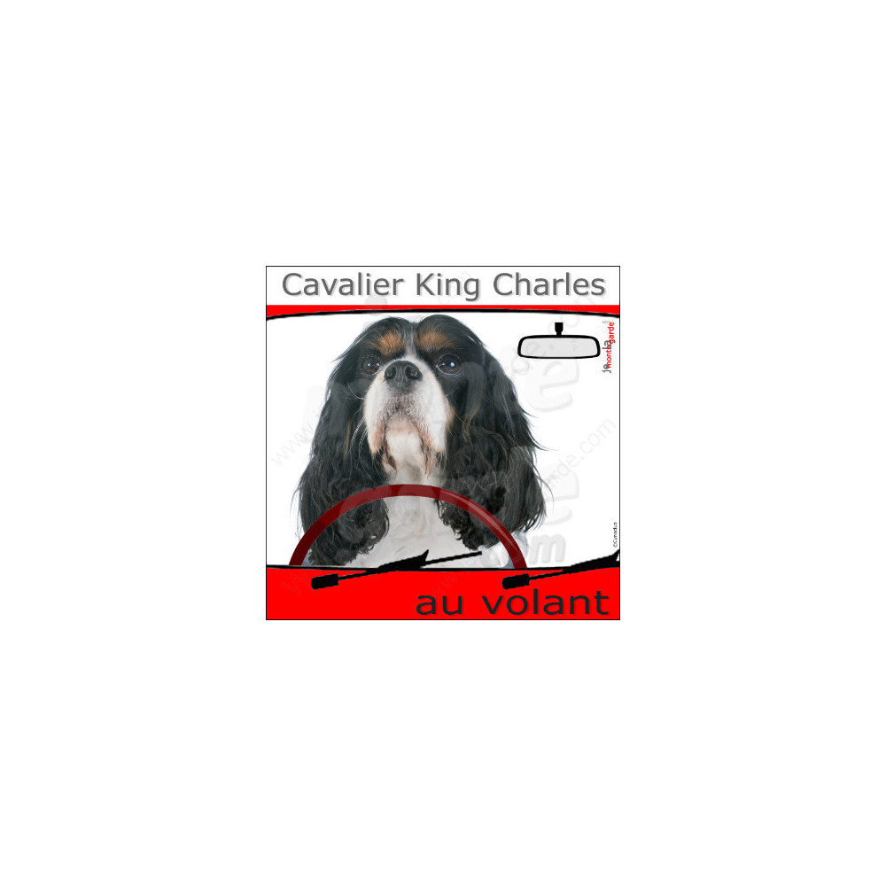 Un autocollant marrant pour amuser ceux qui vous suivent, votre famille, amis... à coller à l'arrière de votre voiture pour prévenir de la présence de votre Cavalier King Charles tricolore.