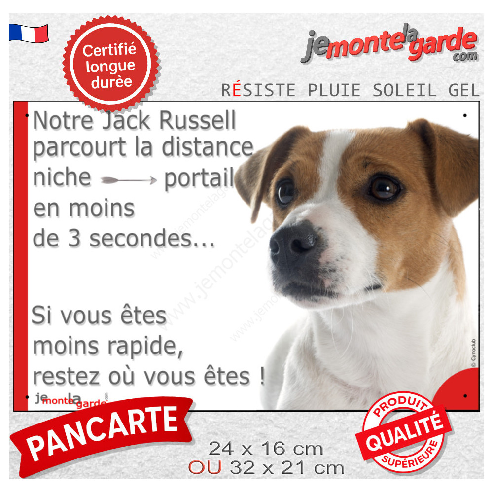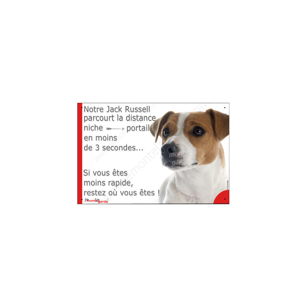Votre Jack Russell Terrier blanc avec des tâches fauve marron est un gardien rapide ? Faîtes-le savoir avec cette plaque originale à placer dès l'entrée !