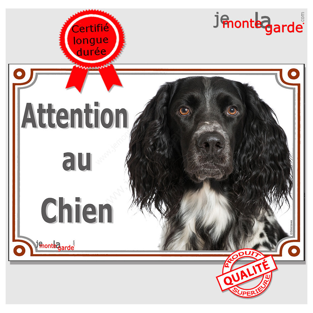 Ce panneau “Attention au Chien” avec la photo d’un élégant Münsterländer noir et blanc est à la fois esthétique et robuste. Fabriqué en France, il résiste aux intempéries. Ce choix assure une sécurité discrète, un clin d’œil élégant et une idée cadeau qui fera sourire et se remarquer.
