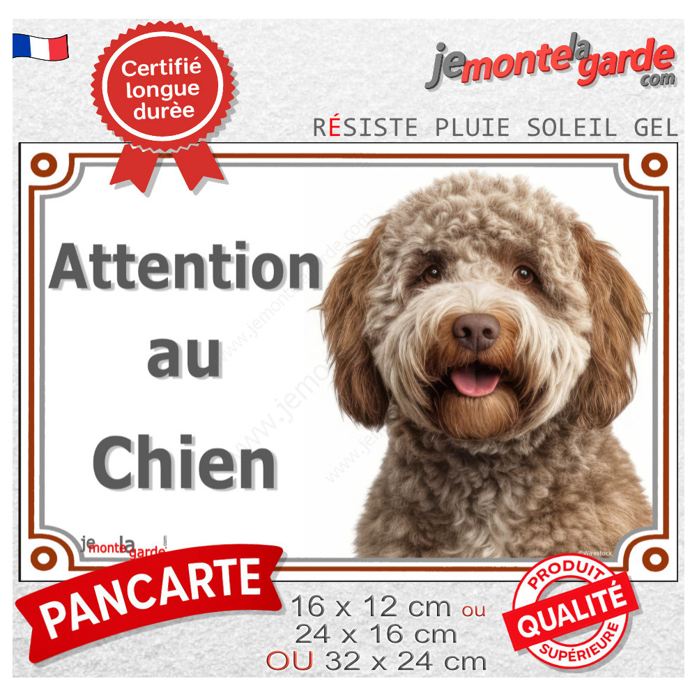 Une pancarte de portail idéale pour valoriser votre Lagotto Romagnolo brun uni tout en prévenant les visiteurs.