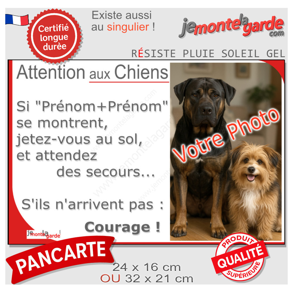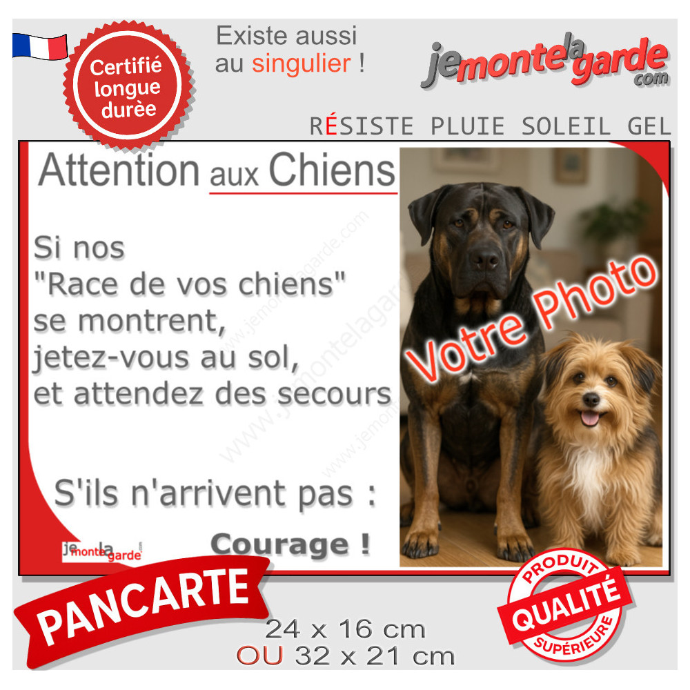 Texte humoristique au pluriel pour amuser vos visiteurs, et dissuader les intrus, avec la photo de votre chien ! On ne peut pas espérer mieux pour faire fuir voleurs et cambrioleurs quand on a plusieurs chiens !