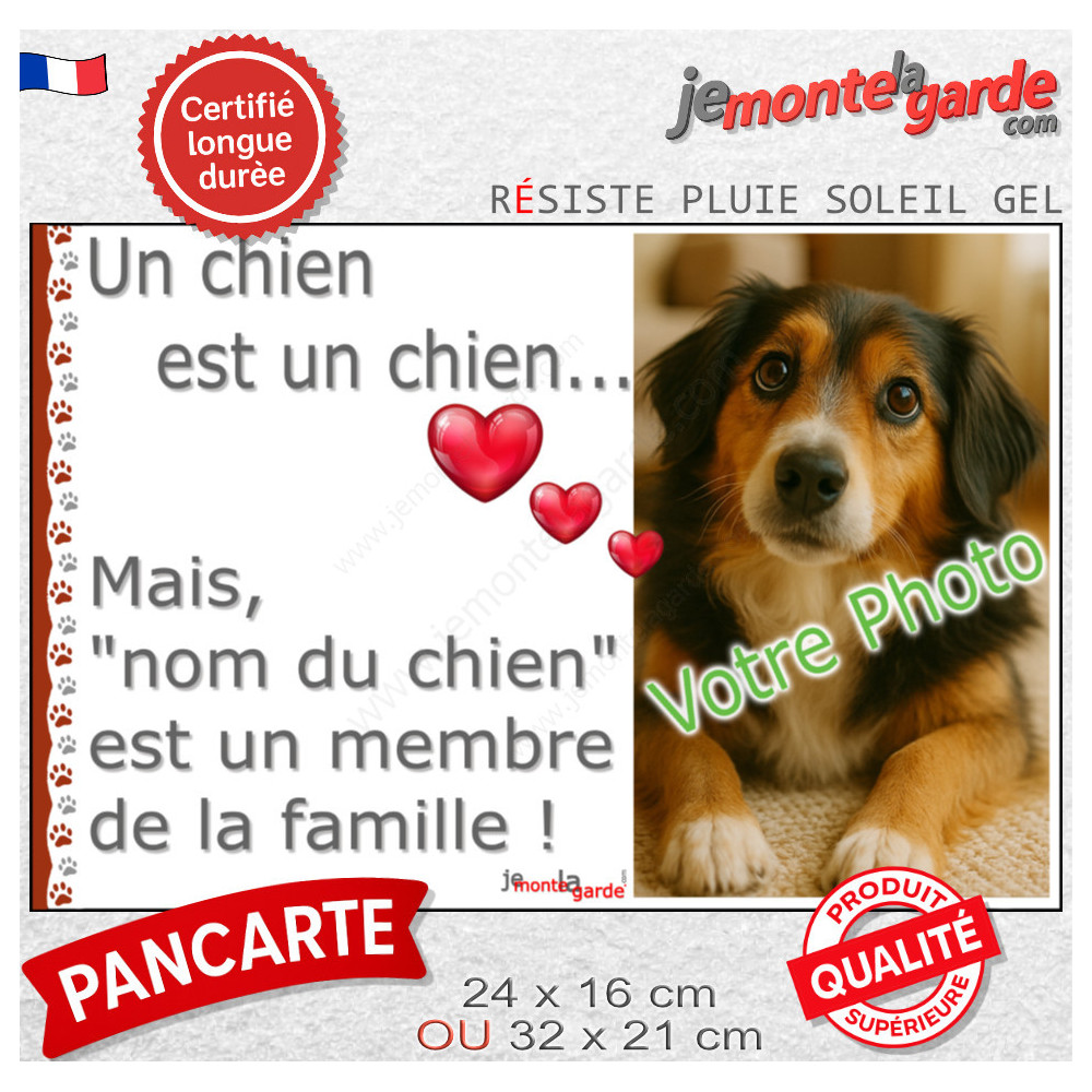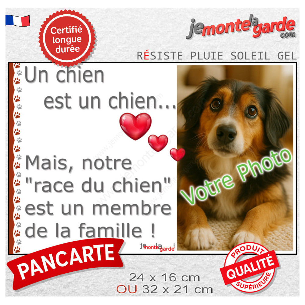| Texte | Un chien est un chien, mais le nôtre est un membre de la famille ! |