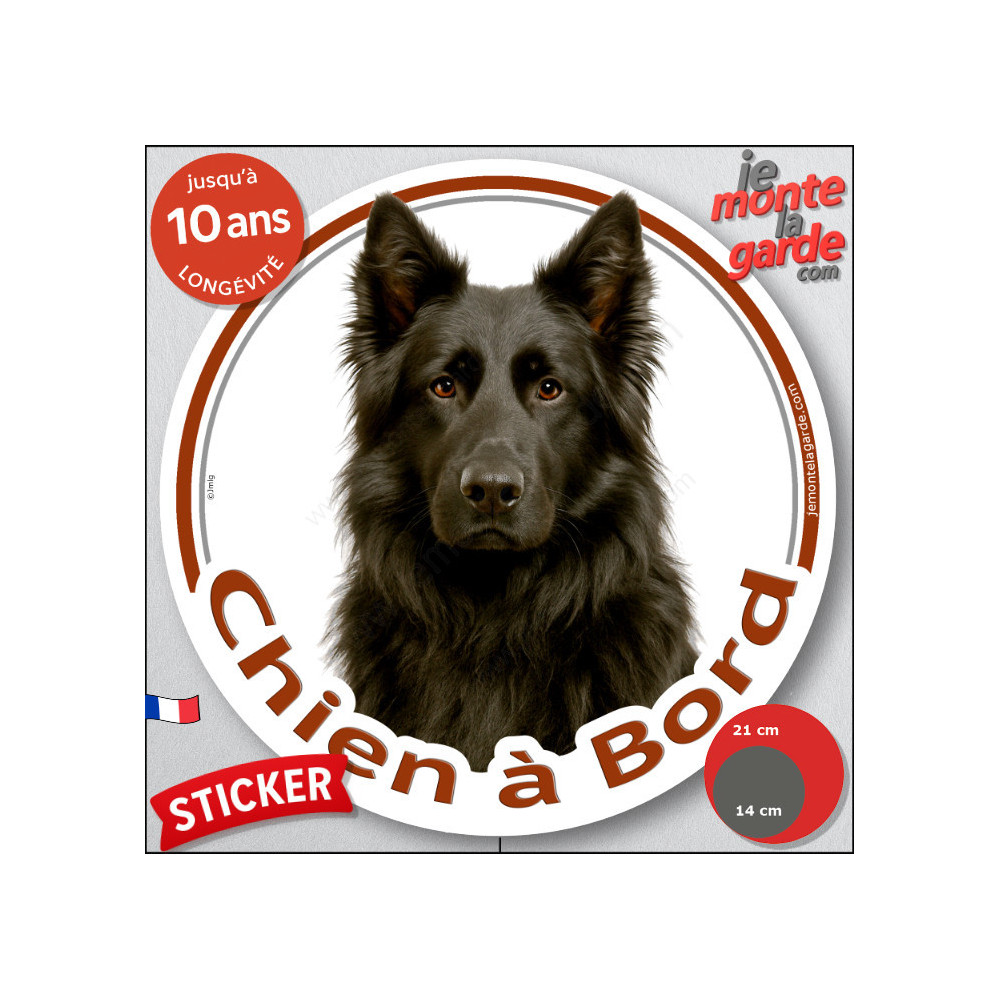 Un disque autocollant rond, disponible en 2 tailles, à coller à l'arrière de votre voiture pour prévenir de la présence de votre Berger Allemand entièrement noir à poils longs.