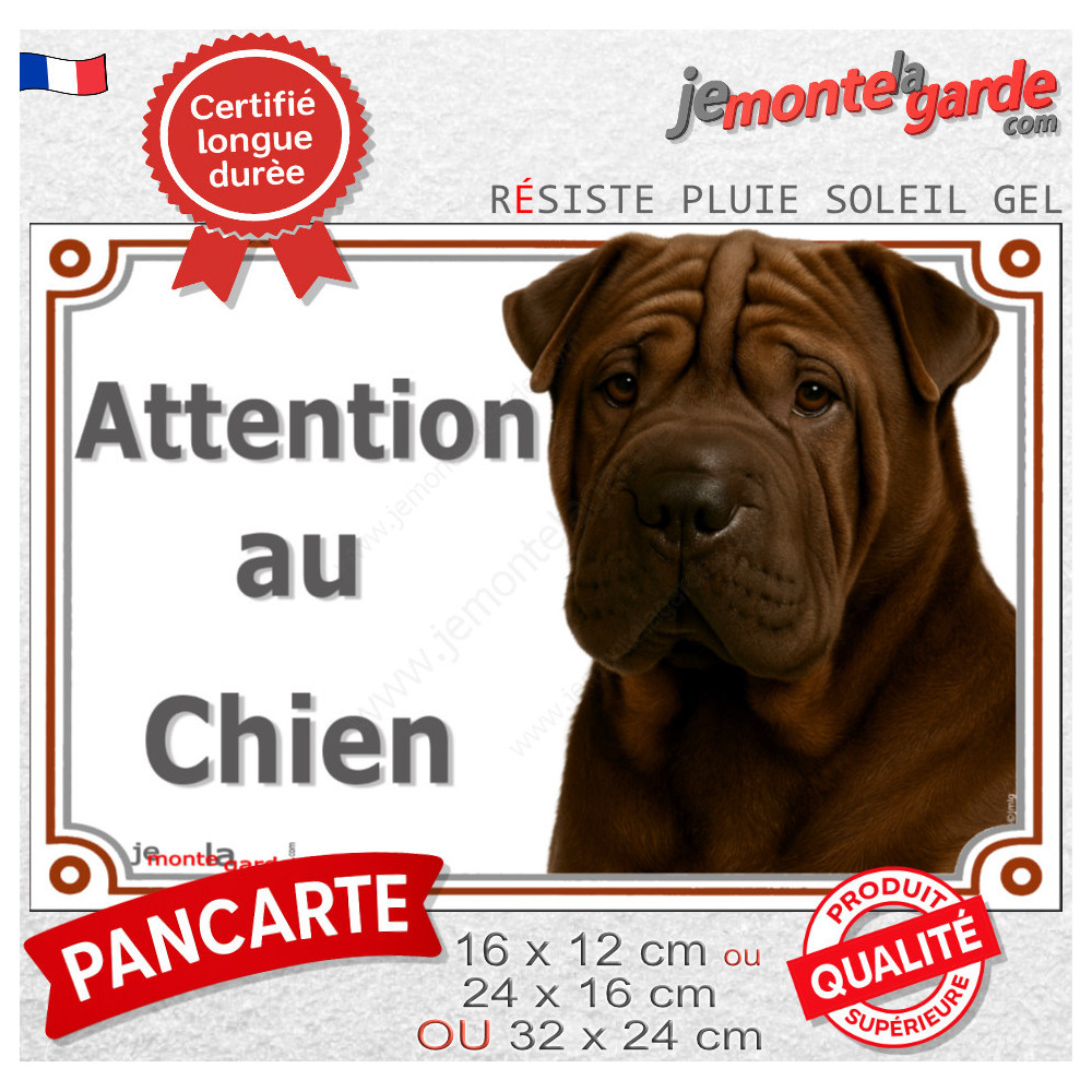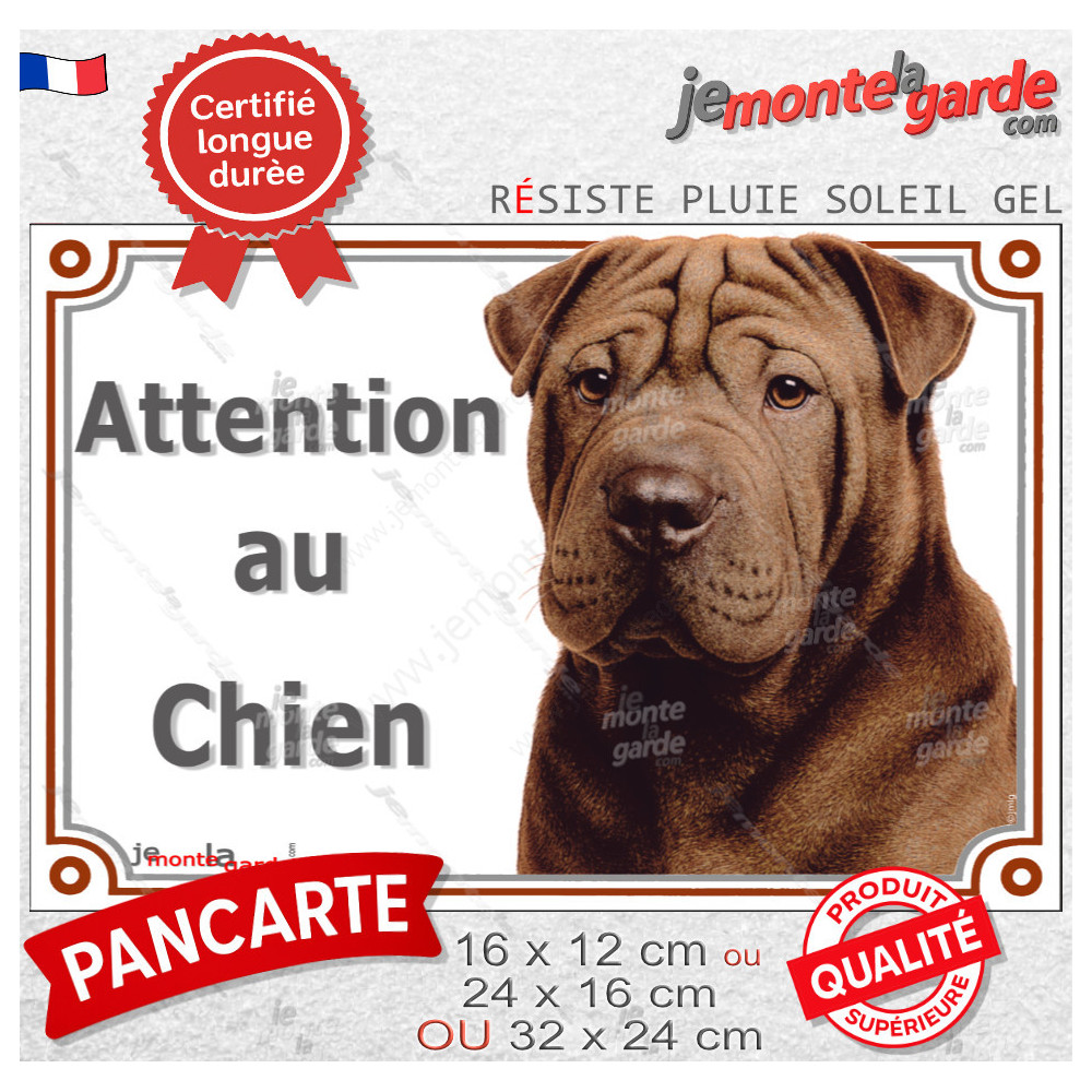 Cette plaque "Attention au Chien", avec la photo d'un Shar-Peï marron chocolat, est fabriquée en France et résiste au soleil, à la pluie et au gel. Parfait pour dissuader discrètement, elle protège tout en douceur avec un message sobre, évitant les produits bas de gamme qui se détériorent rapidement.