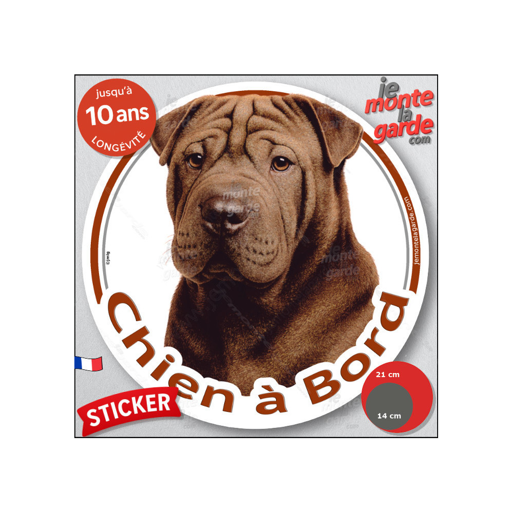 Un disque autocollant rond, disponible en 2 tailles, à coller à l'arrière de votre voiture pour prévenir de la présence de votre Shar-Peï marron chocolat.