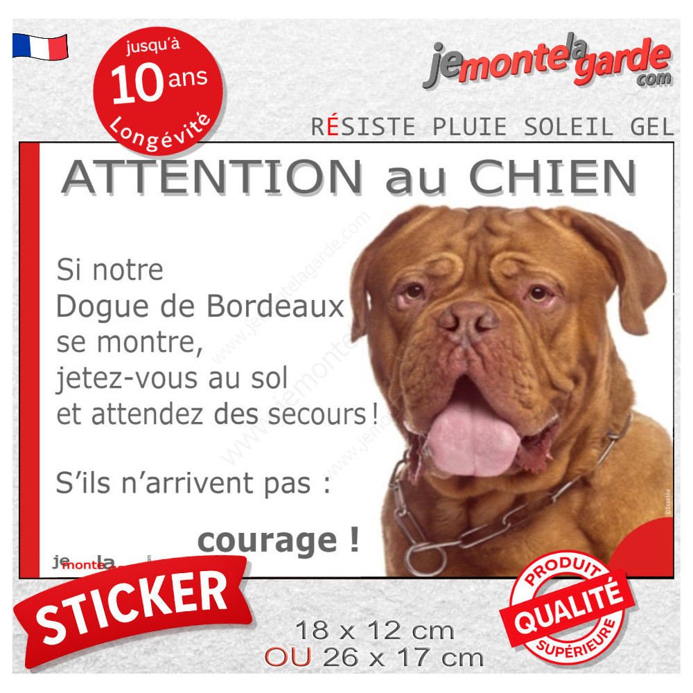 Amusez les passants, vos invités et... la galerie avec un sticker dans votre entrée qui en plus mettra en valeur votre Dogue de Bordeaux acajou à masque rouge ? le message passera toujours mieux avec un peu d'humour !
