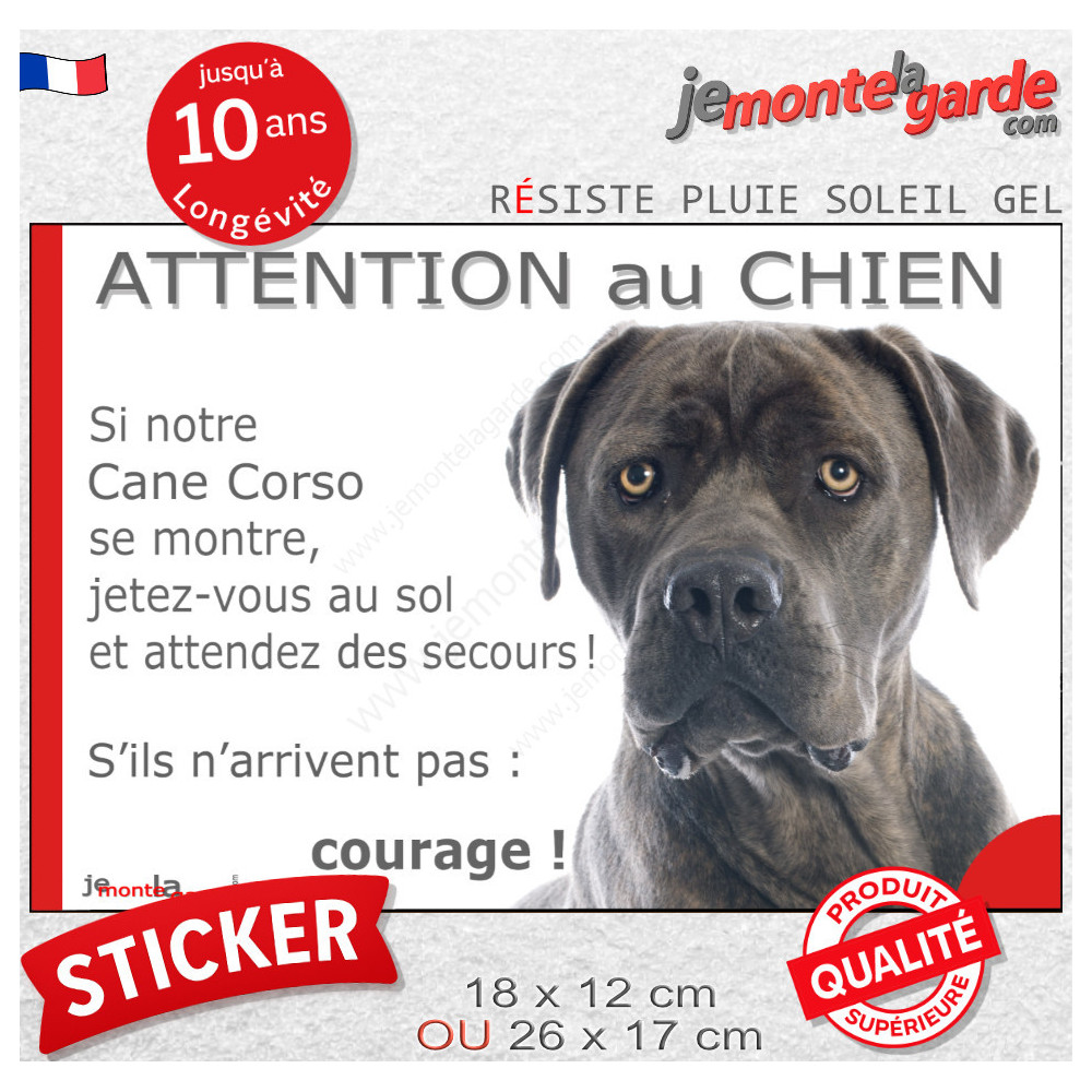 Amusez les passants, vos invités et... la galerie avec un sticker dans votre entrée qui en plus mettra en valeur votre Cane Corso Italiano gris bleu ? le message passera toujours mieux avec un peu d'humour !