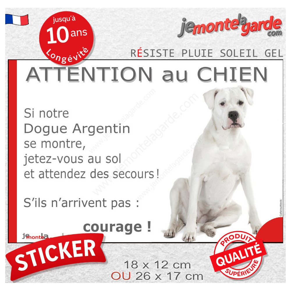 Amusez les passants, vos invités et... la galerie avec un sticker dans votre entrée qui en plus mettra en valeur votre Dogue Argentin tout blanc ? le message passera toujours mieux avec un peu d'humour !