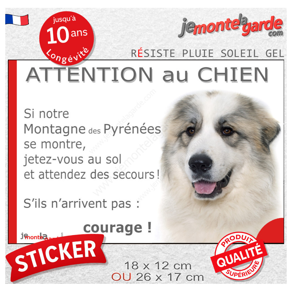 Amusez les passants, vos invités et... la galerie avec un sticker dans votre entrée qui en plus mettra en valeur votre Montagne des Pyrénées blanc avec des taches gris ardoisé ? le message passera toujours mieux avec un peu d'humour !