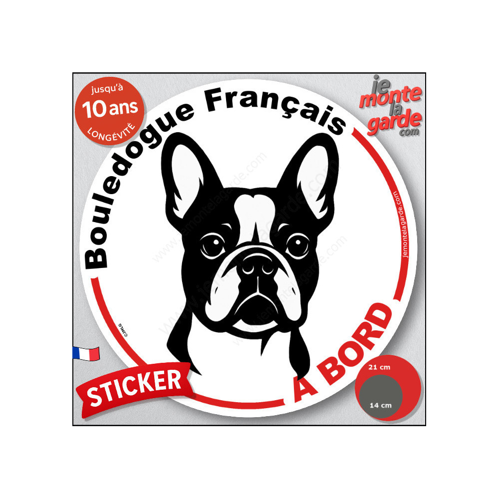 Un disque autocollant rond, disponible en 2 tailles, à coller à l'arrière de votre voiture pour prévenir de la présence de votre Bouledogue Français.