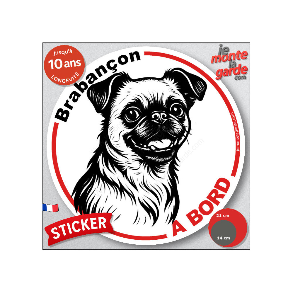 Un disque autocollant rond, disponible en 2 tailles, à coller à l'arrière de votre voiture pour prévenir de la présence de votre Brabançon.