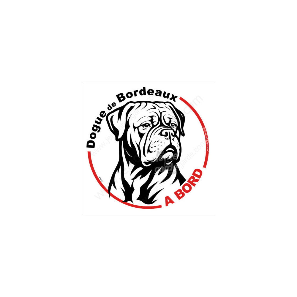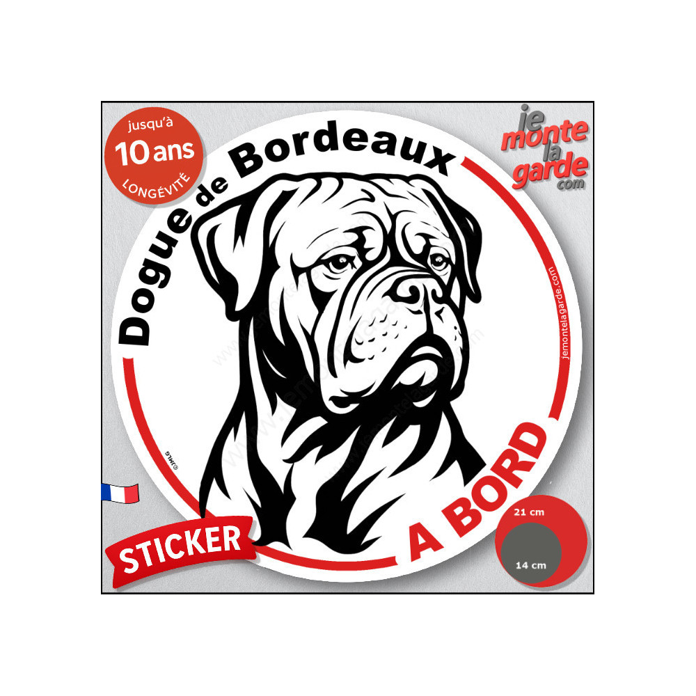 Un disque autocollant rond, disponible en 2 tailles, à coller à l'arrière de votre voiture pour prévenir de la présence de votre Dogue de Bordeaux.