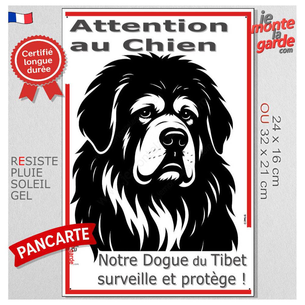 Plaque verticale “Attention au Chien, merci de ne pas entrer sans autorisation” avec silhouette d’un Dogue du Tibet en noir stylisée. Idéale pour poteau ou portail étroit, pancarte résistante au soleil, à la pluie et au gel pour dissuader les intrus, éviter les fuites et gérer les visiteurs avec respect et sécurité.
