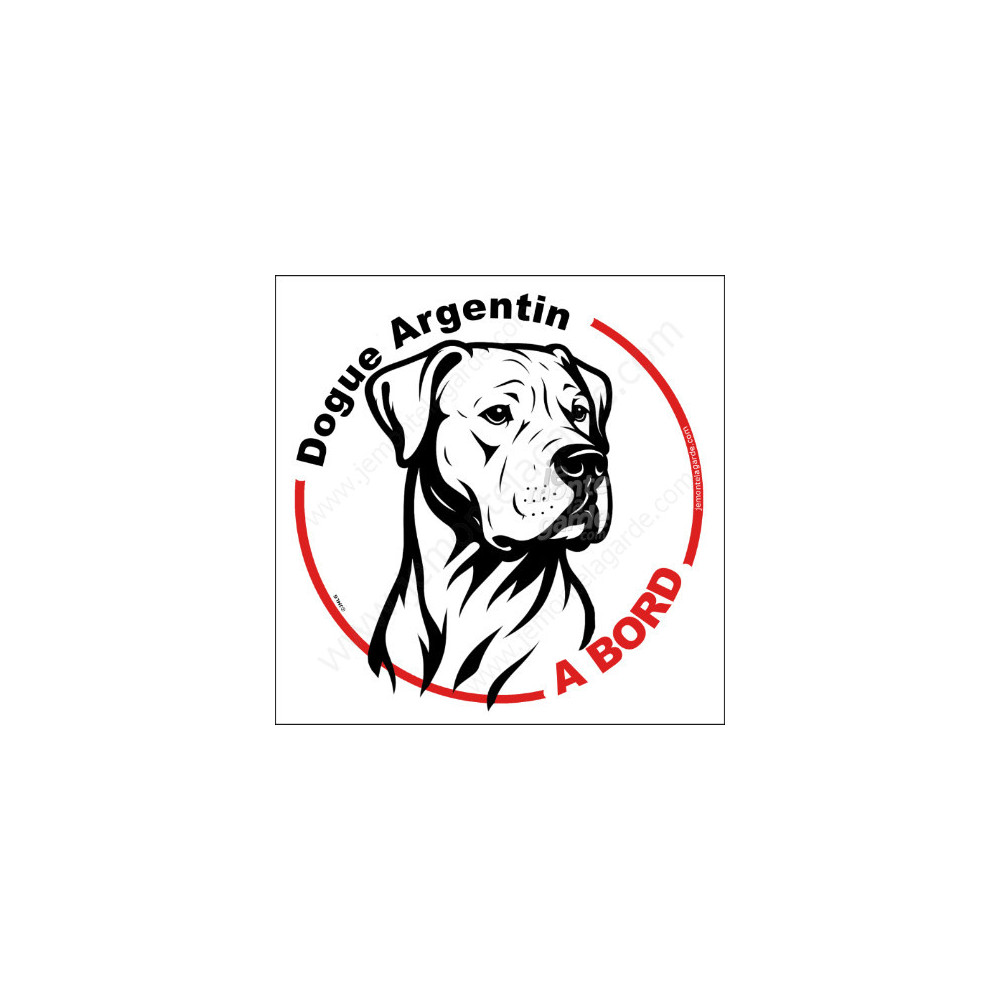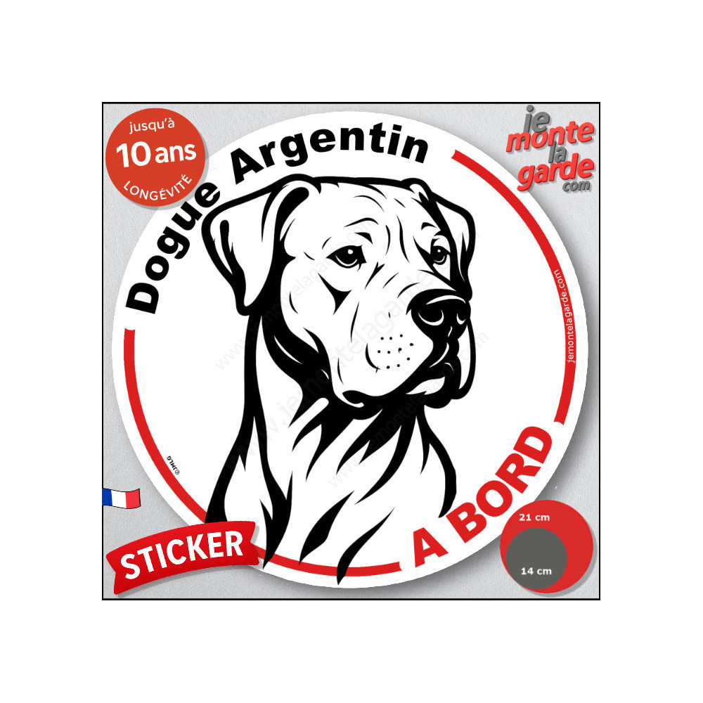 Un disque autocollant rond, disponible en 2 tailles, à coller à l'arrière de votre voiture pour prévenir de la présence de votre Dogue Argentin.