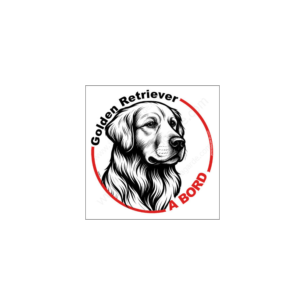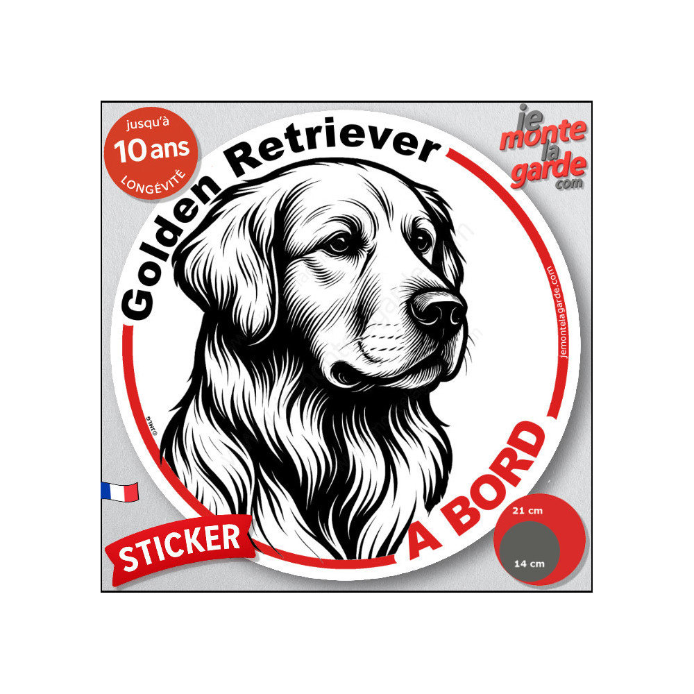 Un disque autocollant rond, disponible en 2 tailles, à coller à l'arrière de votre voiture pour prévenir de la présence de votre Golden Retriever.