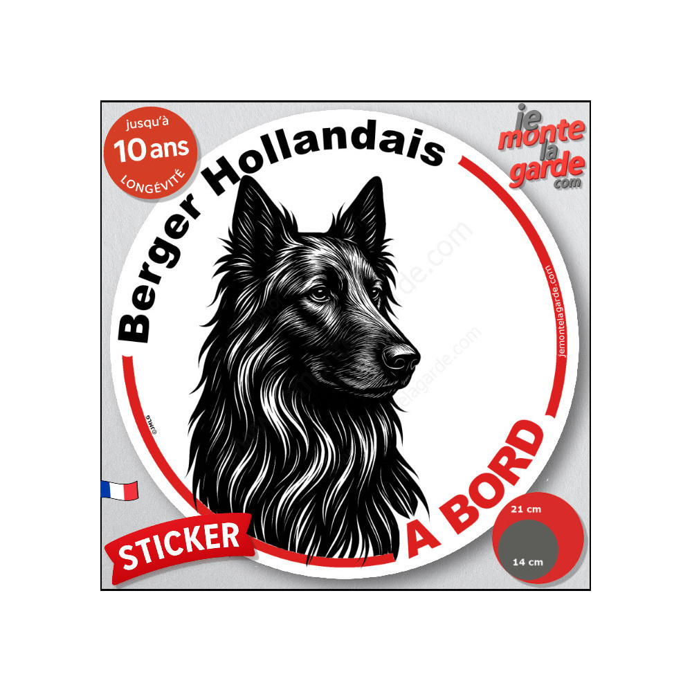 Un disque autocollant rond, disponible en 2 tailles, à coller à l'arrière de votre voiture pour prévenir de la présence de votre Berger Hollandais à poils longs.