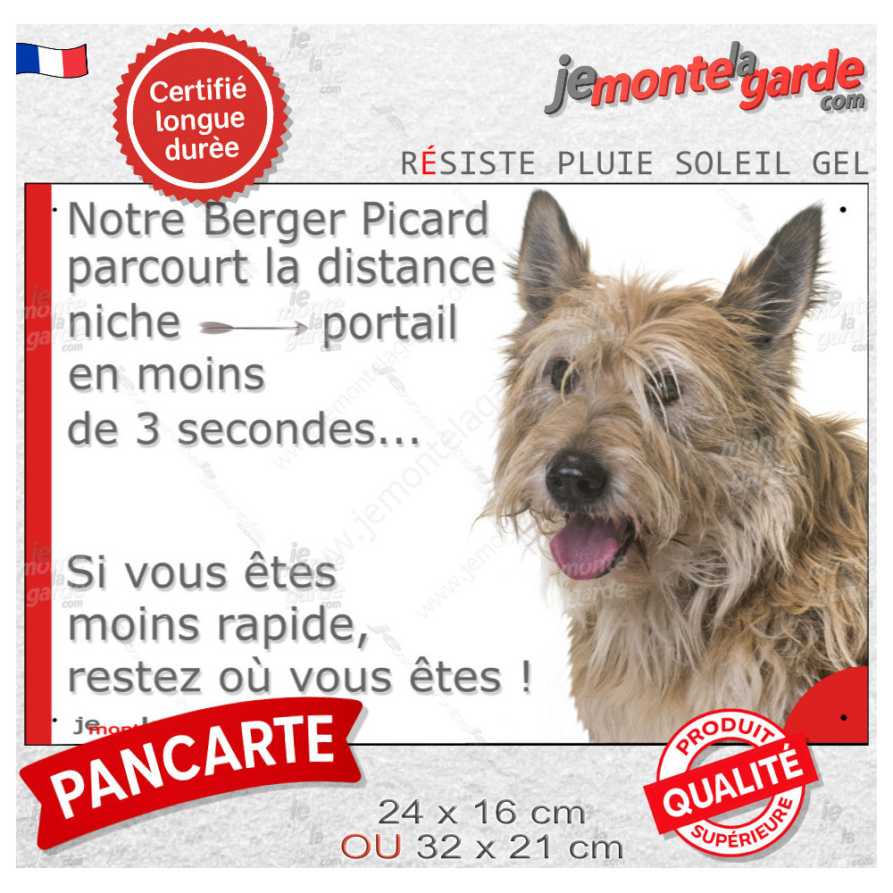 Votre Berger Picard est un gardien rapide ? Faîtes-le savoir avec cette plaque humoristique originale à placer dès l'entrée !