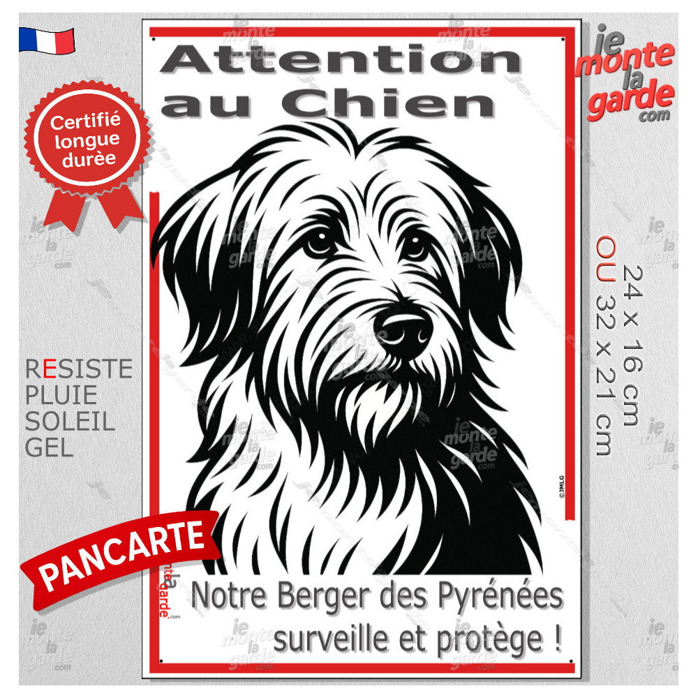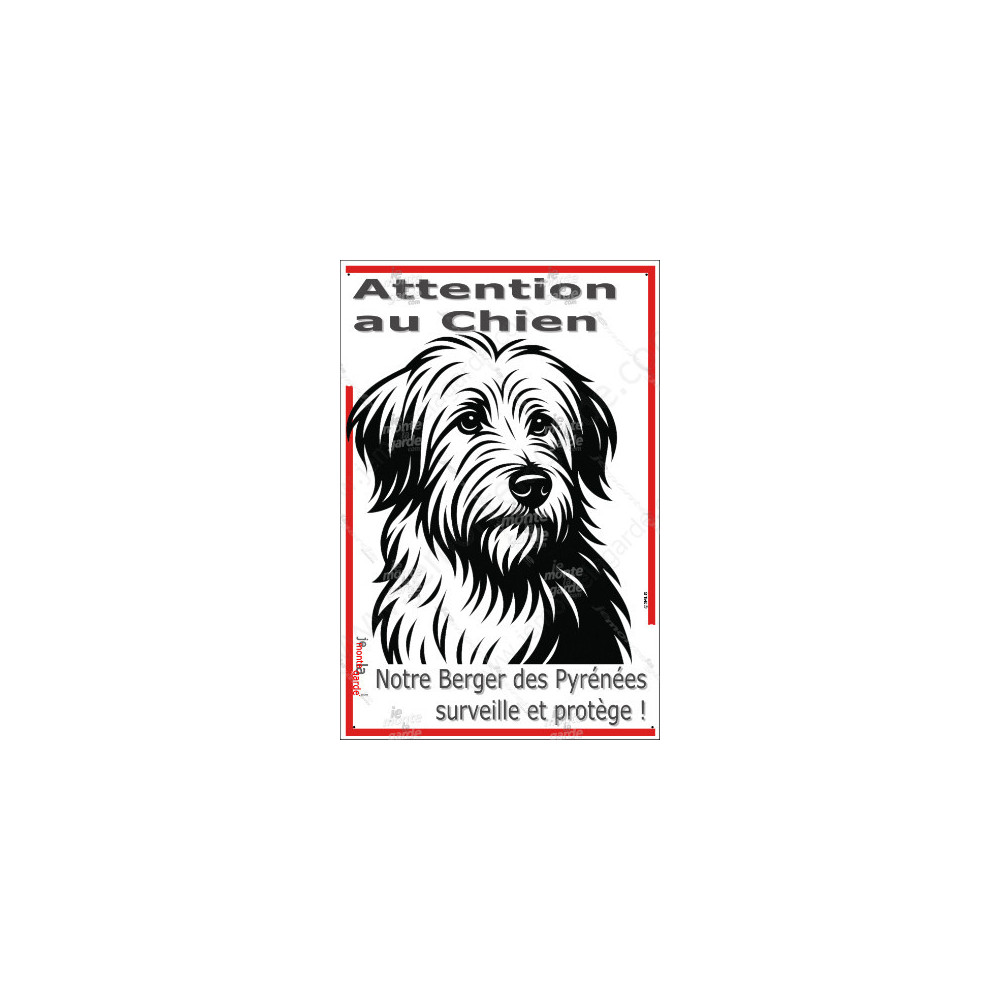 Plaque verticale “Attention au Chien, merci de ne pas entrer sans autorisation” avec dessin d’un Labrit, Berger des Pyrénées, en noir et blanc stylisée. Idéale pour poteau ou portail étroit, résiste au soleil, à la pluie et au gel, dissuade les intrus, évite les fuites et gére les visiteurs avec respect et sécurité.