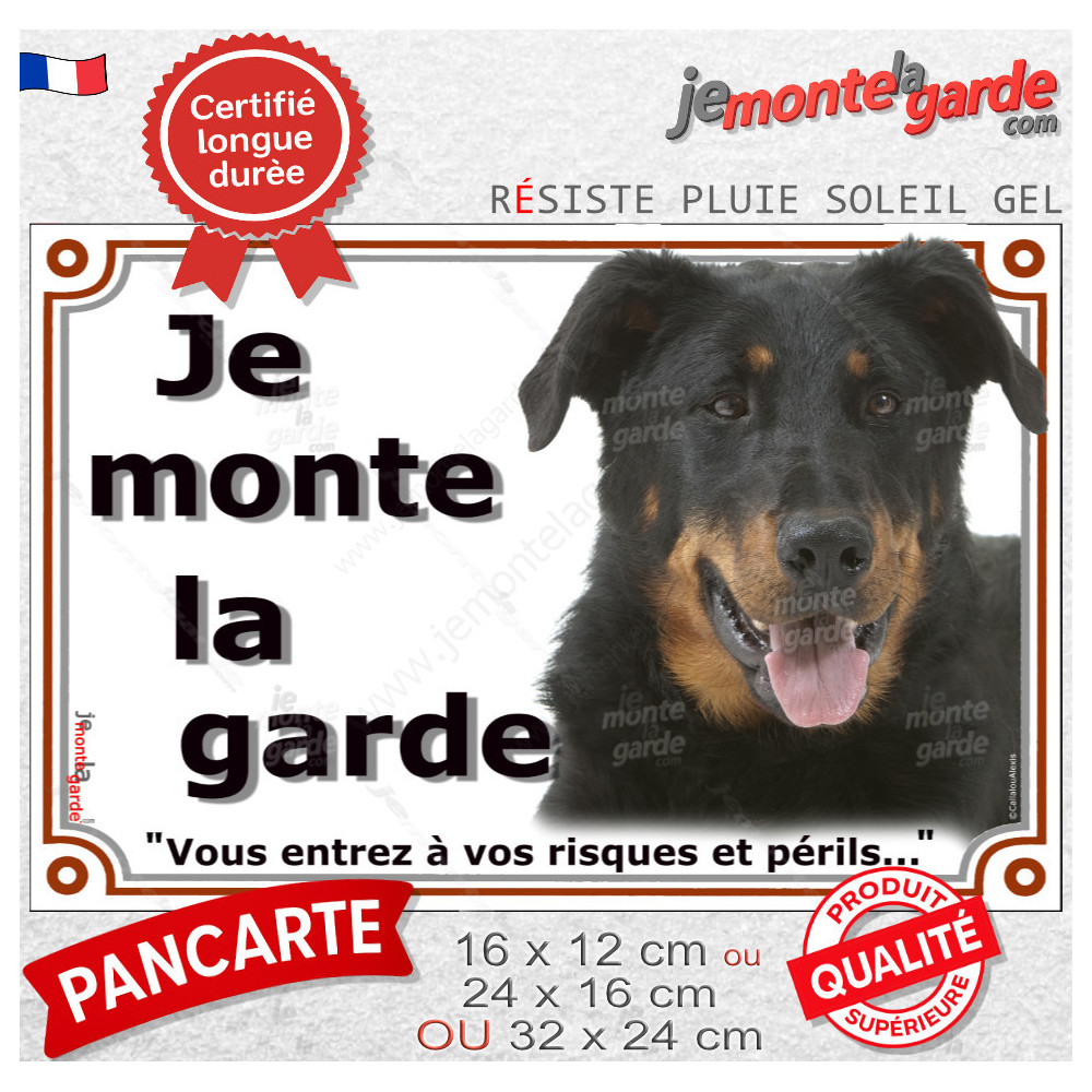 En conclusion, ce panneau "Je monte la garde, vous entrez à vos risques et périls" est bien plus qu'une simple pancarte de portail. Il incarne la vigilance, la tradition et la qualité, tout en offrant une sécurité renforcée à votre domicile. Avec son Berger de Beauce noir et feu, il ajoute une note de caractère et de distinction à votre entrée, faisant de votre portail non seulement un point d’accès, mais aussi un symbole de protection et de fierté. Un choix judicieux pour ceux qui apprécient la qualité et la durabilité, tout en respectant et honorant la noblesse d'une race ancestrale.