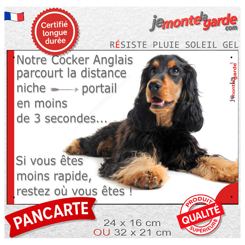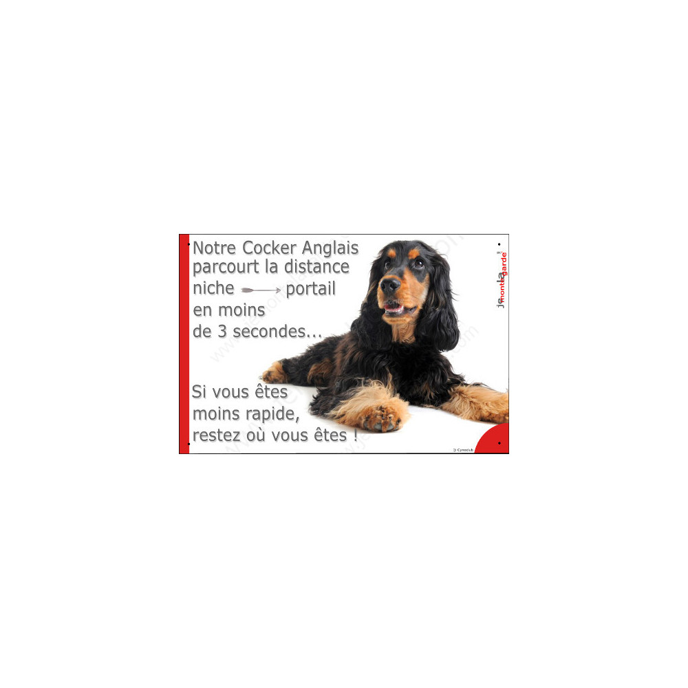 Votre Cocker Anglais Spaniel Noir et Feu est un gardien rapide ? Faîtes-le savoir avec cette plaque originale à placer dès l'entrée !